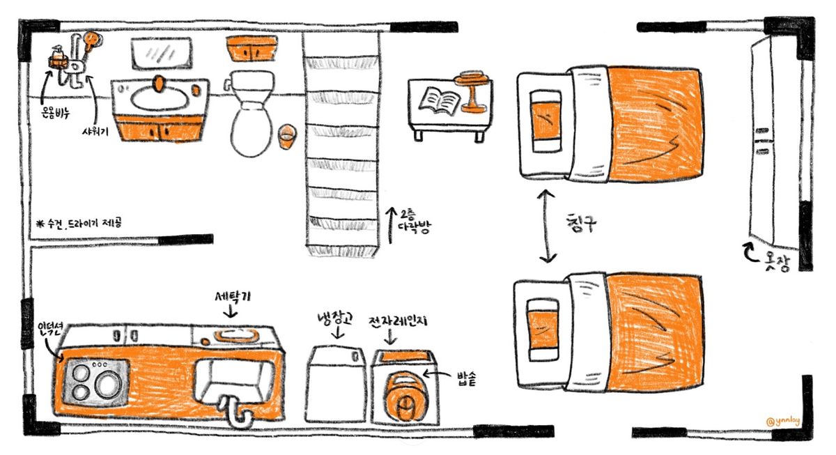* 간단한 빨래와 설거지는 모두 숙소에서 가능합니다.
